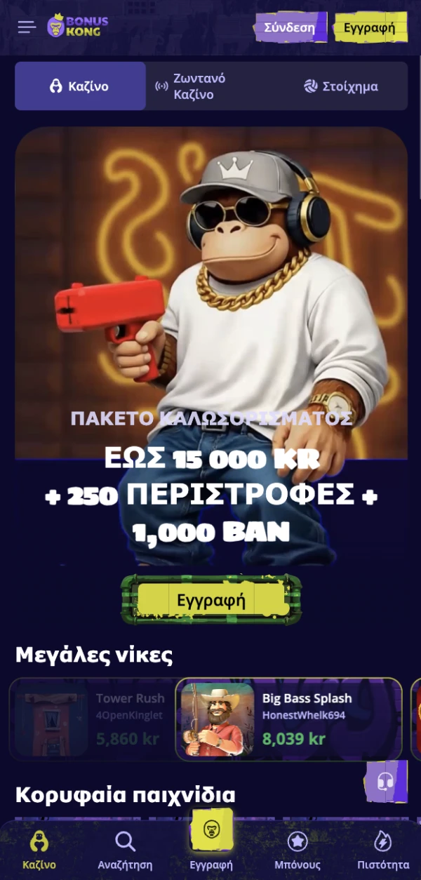 Η mobile διάταξή μας είναι φτιαγμένη για χρήση με το ένα χέρι και ευανάγνωστη προβολή σε μικρότερες οθόνες. Τα μενού είναι σύντομα, τα κουμπιά πατιούνται εύκολα και η διαδρομή από το lobby στο παιχνίδι είναι άμεση. Αυτό έχει σημασία όταν μετακινείστε μεταξύ ενοτήτων όπως live καζίνο, ταμείο, υποστήριξη και φρουτάκια BonusKong χωρίς να χάνετε χρόνο σε περιττά βήματα.